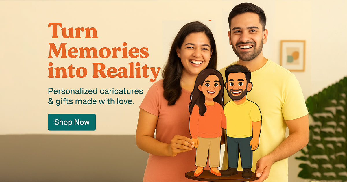 “We transform your photos into modern, desi-fun caricatures with premium finishing. Perfect for birthdays, anniversaries, and ‘just because.’”