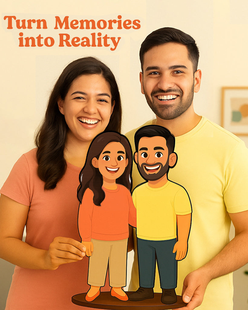 “We transform your photos into modern, desi-fun caricatures with premium finishing. Perfect for birthdays, anniversaries, and ‘just because.’”